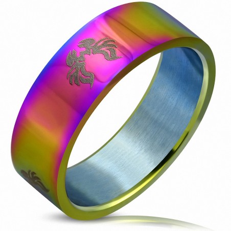 8mm | Bague de bande plate d'aile tribal en acier inoxydable anodisé