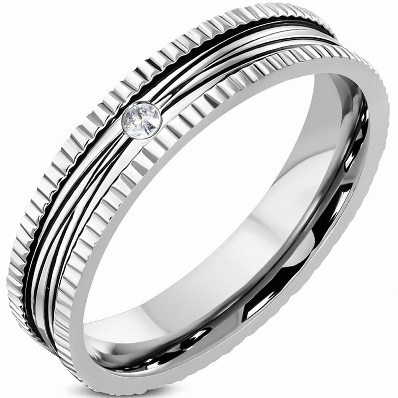 4mm | Bague de mariage en acier inoxydable 2 tons Milgrain Edge Comfort Fit, coupe ajustée, clair