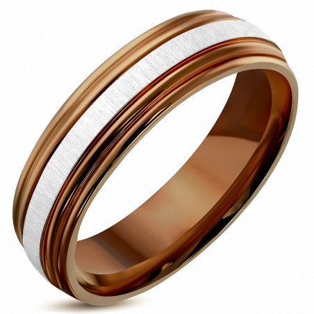 6mm | Bague plat à ajustement confortable à bord côtelé à 2 tons en acier inoxydable satiné