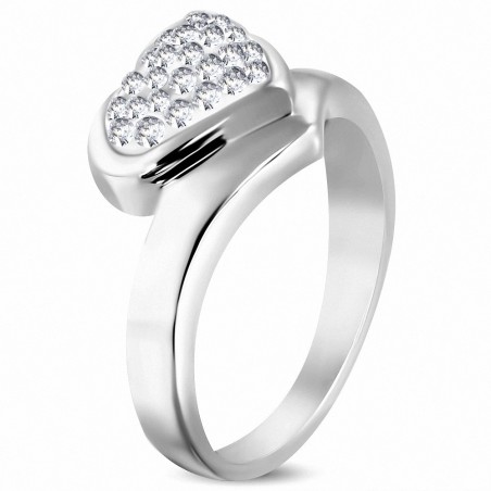 • Bague fantaisie avec coeur d'amour en acier inoxydable PaveSet avec CZ transparent