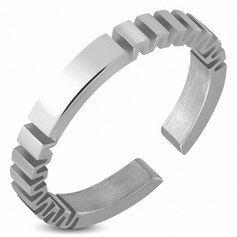 • 3mm | Bague à bande ouverte côtelée en acier inoxydable