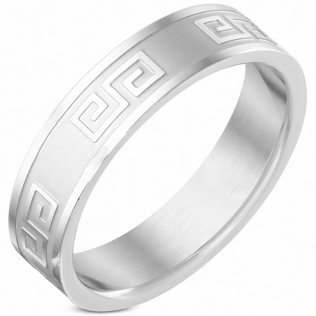 • 6mm | Bague plat à bande grecque finie en acier inoxydable mat