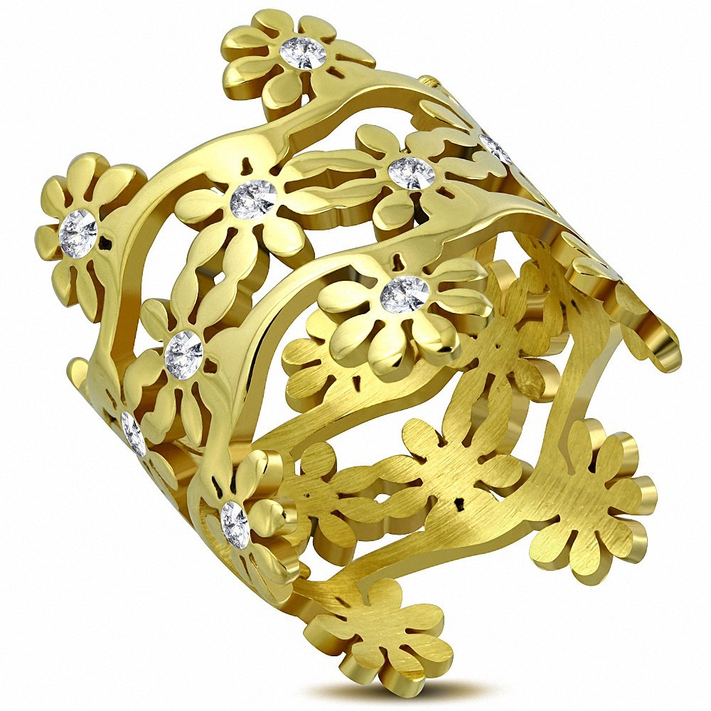Bague de mariage en acier inoxydable avec lien de fleurs en plaqué or