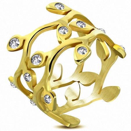 • Bague de vigne en feuille de spirale en acier inoxydable plaqué de couleur d'or avec CZ transparent