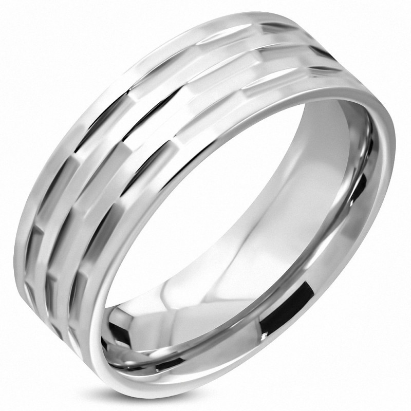 • 8mm | Bague plat à ajustement confortable à facettes en acier inoxydable