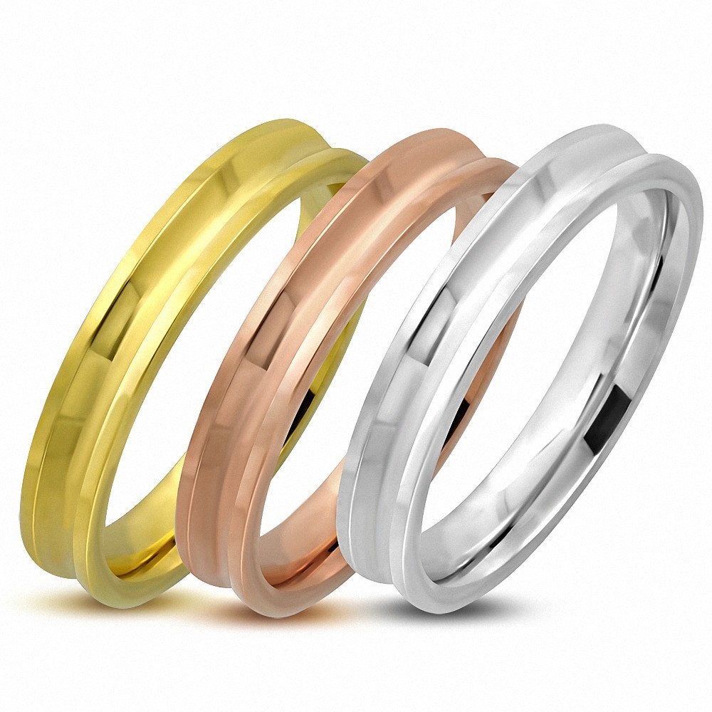 12mm | Ensemble de bagues superposables concaves en acier inoxydable 3 tons tricolore