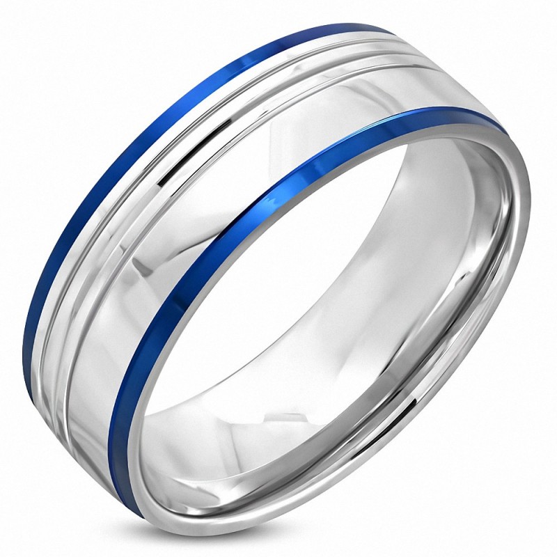 • 8mm | Bague demi-rond ajusté en acier inoxydable à rayures rainurées et à 2 tons