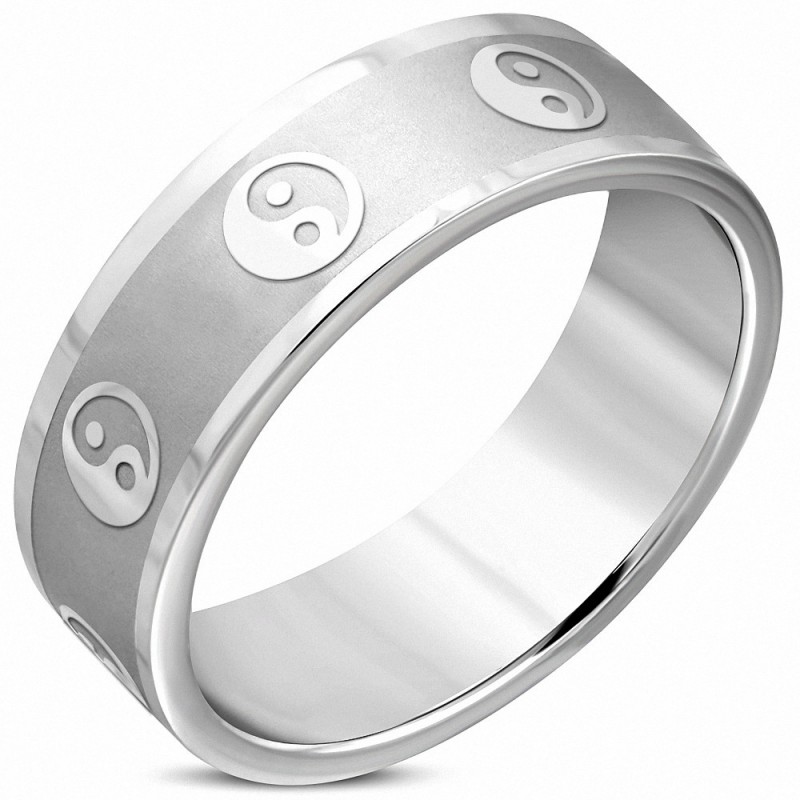 8mm | YinYang / Le Symbole Tao / Bagua Bague Plat En Acier Inoxydable Fini Mat
