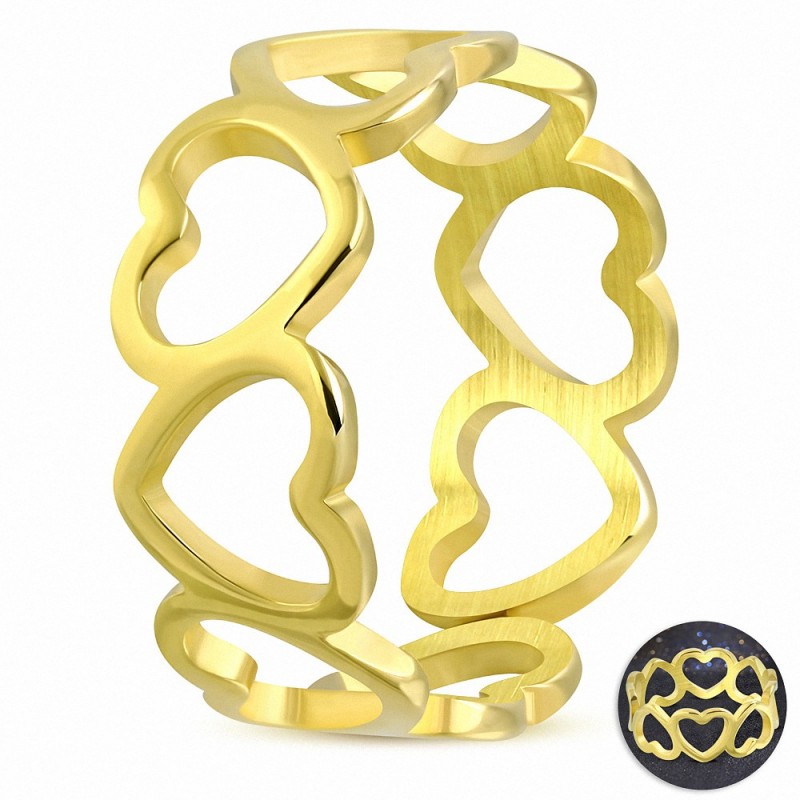 Bague fantaisie en argent avec coeur ouvert en acier inoxydable plaqué or