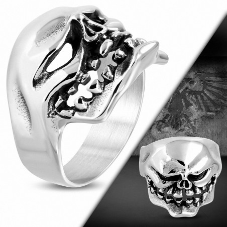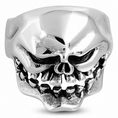 Bague de motard avec crâne de zombie en acier inoxydable à 2 tons