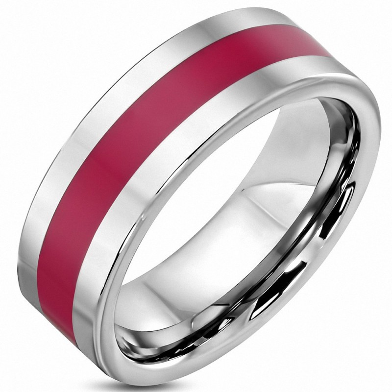 • 8mm | Bague à ajustement confortable, coupe ajustée, rayure rose en carbure de tungstène