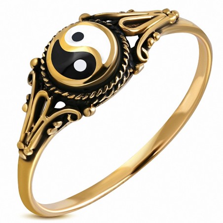 • YinYang en émail à la mode / Le symbole Tao / Bague en bronze à queue de vigne