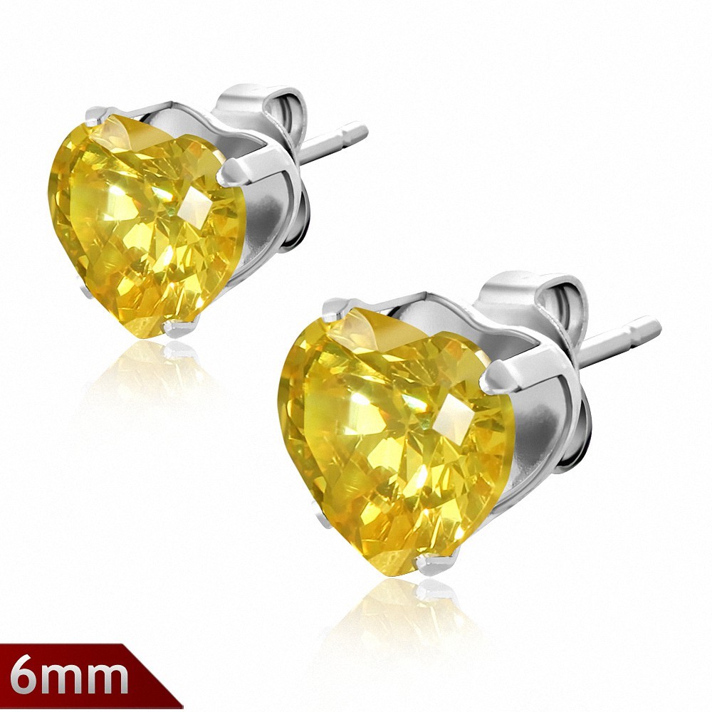 Paire boucles d'oreilles avec broche en acier inoxydable de 6mm sertie de pierres de naissance de novembre en forme de cœur