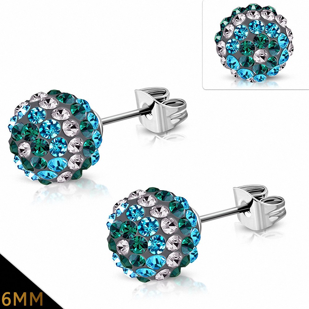 • Paire de boucles d'oreilles clous boule disco shamballa vert bleu