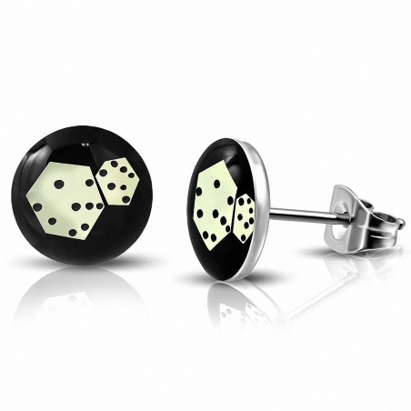 7mm | Boucles d'oreilles clous à cercle Lucky Dice Circle en acier inoxydable à 3 tons (paire)