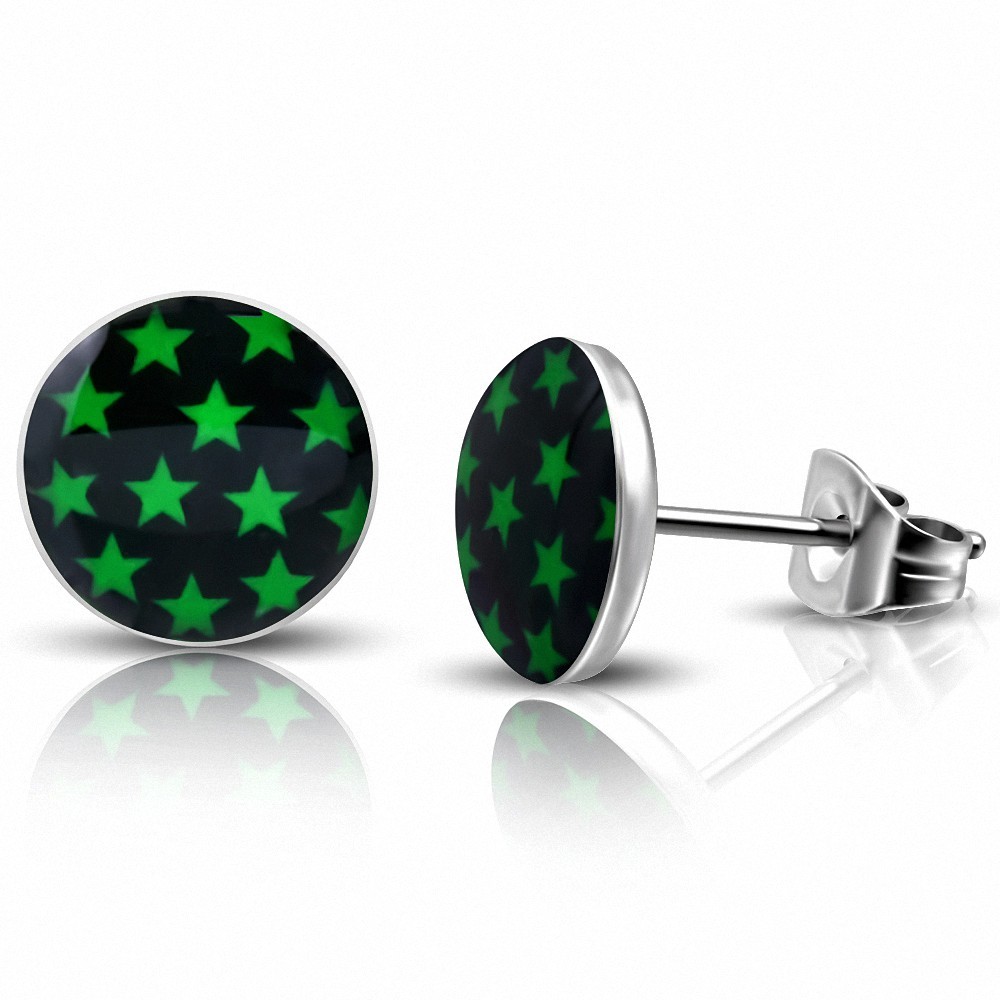 10mm | Boucles d'oreilles en acier inoxydable à 3 tons avec cercle d'étoiles vertes (paire)