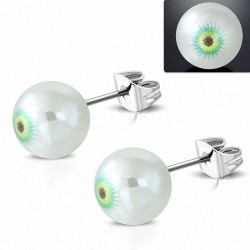 7mm | Boucles d'oreilles carrées Emoticon Heureux Emoticon 3 tons en acier inoxydable (Paire)