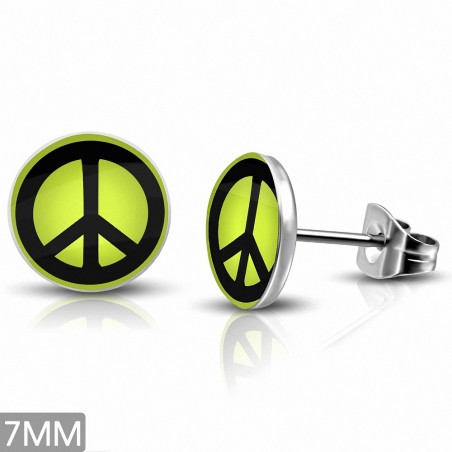 7mm | Boucles d'oreilles clous rondes à 3 tons en acier inoxydable avec signe de la paix, citron vert (Paire)