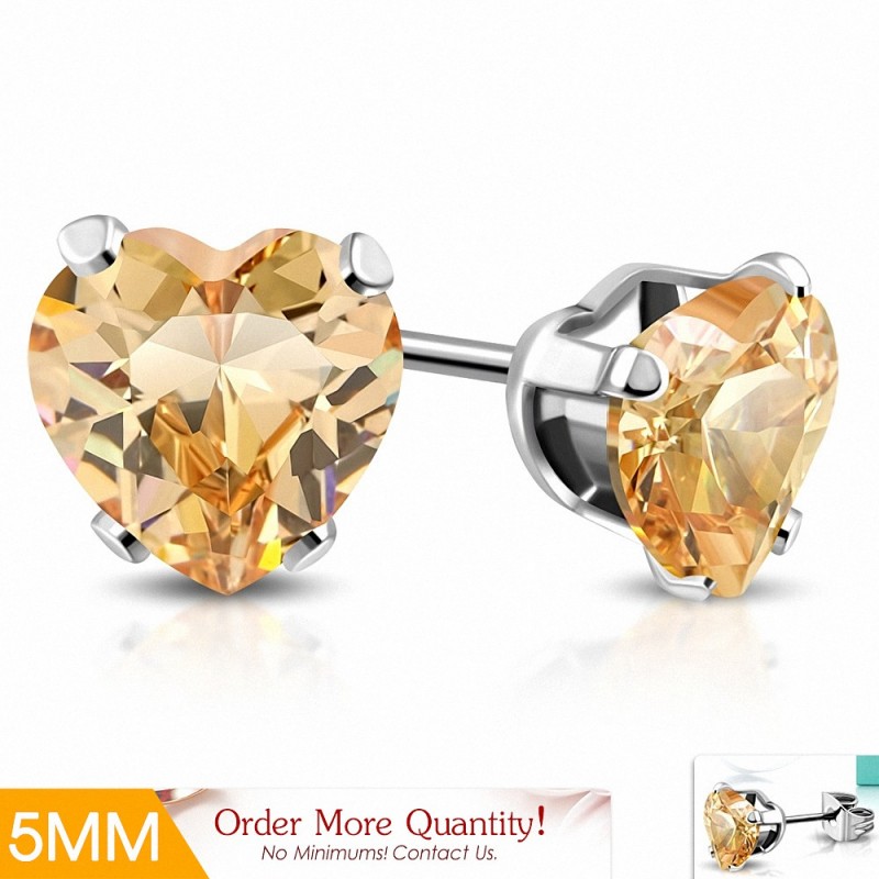 • 5mm | Boucles d'oreilles en forme de coeur en acier inoxydable avec cœur d'amour avec topaze CZ (paire)