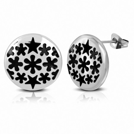 • Boucles d'oreilles rondes en forme de cercle d'étoiles rondes en acier inoxydable émaillé noir (paire)