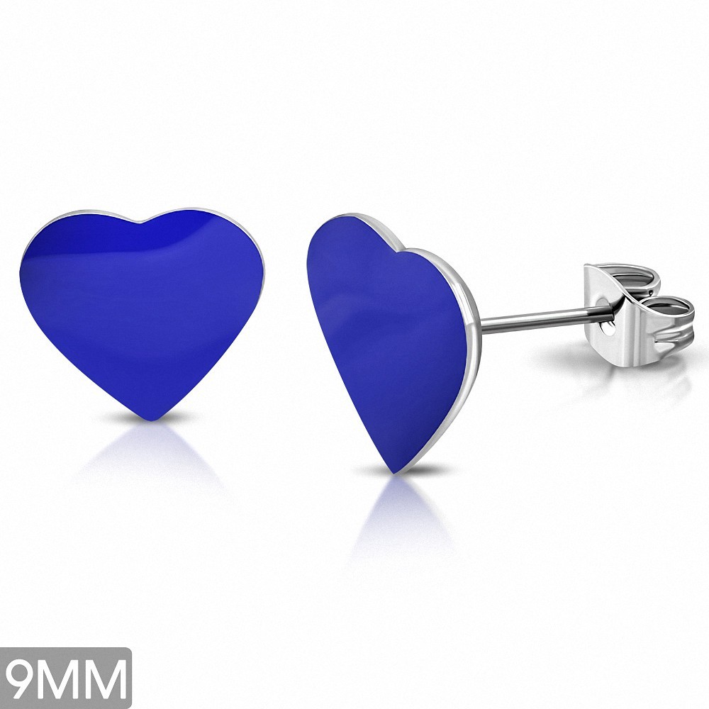 • 9mm | Boucles d'oreilles clous en acier inoxydable avec coeur bleu royal en acier inoxydable (paire)