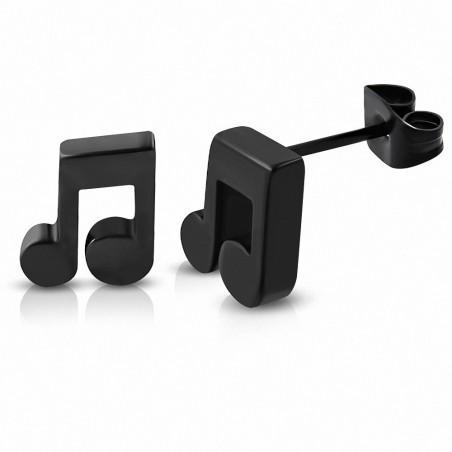 Boucles d'oreille musicales avec barrette unique en acier inoxydable noir (paire)