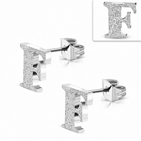 • Boucles d'oreilles Alphabet F en acier inoxydable sablé (paire)