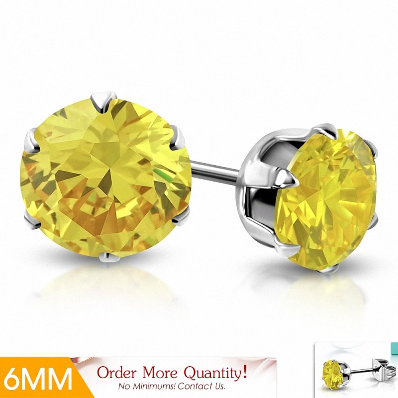 • 6mm | Boucles d'oreille rondes en acier inoxydable avec pendentif rond et zircons jaunes (paire)