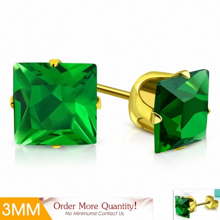 • 3mm | Boucles d'oreilles carrées en acier inoxydable doré avec émail CZ (paire)