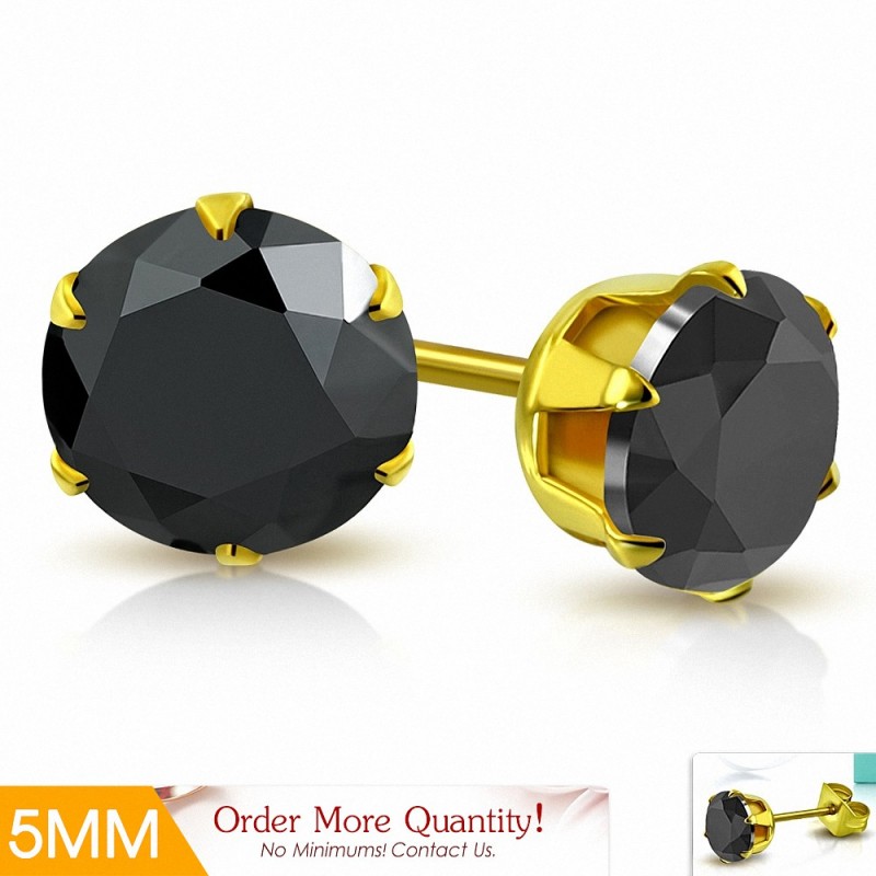 • 5mm | Boucles d'oreille rondes en acier inoxydable doré avec rondelles et serti de zircons cubiques (paire)