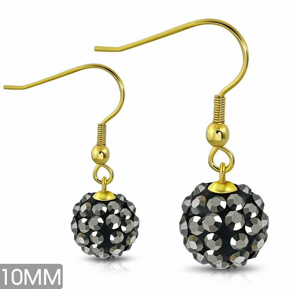 10mm | Boucles d'oreilles à crochet long en acier inoxydable plaqué en couleur argent avec boule de disco gris