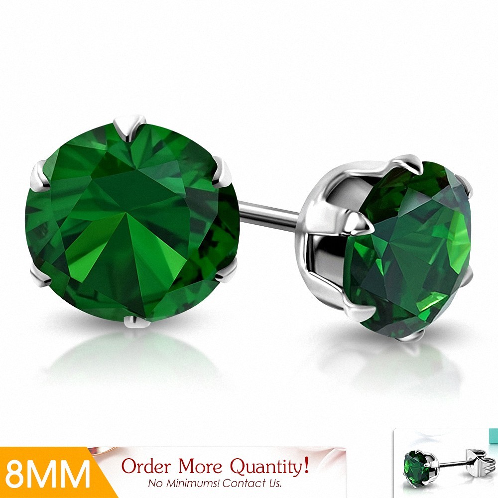 8mm | Boucles d'oreille rondes en acier inoxydable avec pendentif cercle et émeraude CZ (paire)