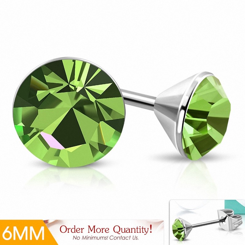 • 6mm | Boucles d'oreilles clous rondes en acier inoxydable avec sertissage lunette sertie de  olivine CZ (paire)
