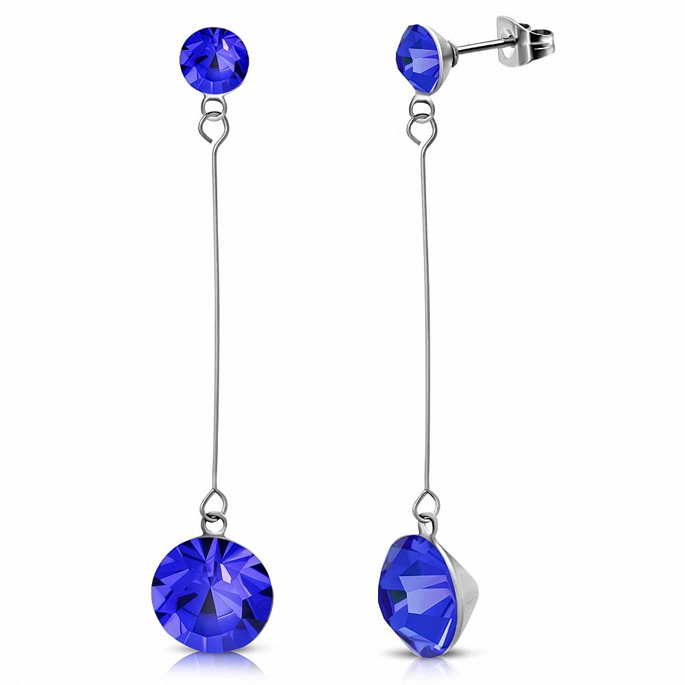 • Capri Bleu CZ avec Cercle Rond 4mm & 7mm en Acier Inoxydable Longues Boucles Boucles d'oreilles clous (paire)