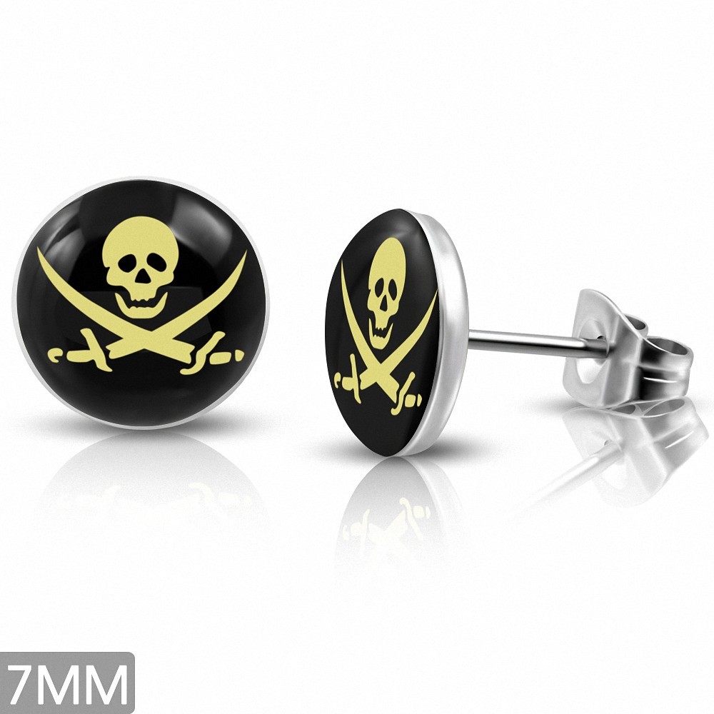 • 7mm | Clous d'oreilles en acier inoxydable à 3 tons avec tête de mort et cercle de mort - Paire