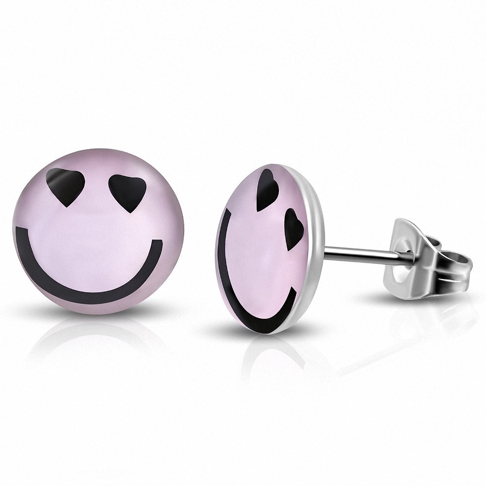 7mm | Boucles d'oreilles en forme de cercle Emoticon Smiley In Emoticon en acier inoxydable (paire)