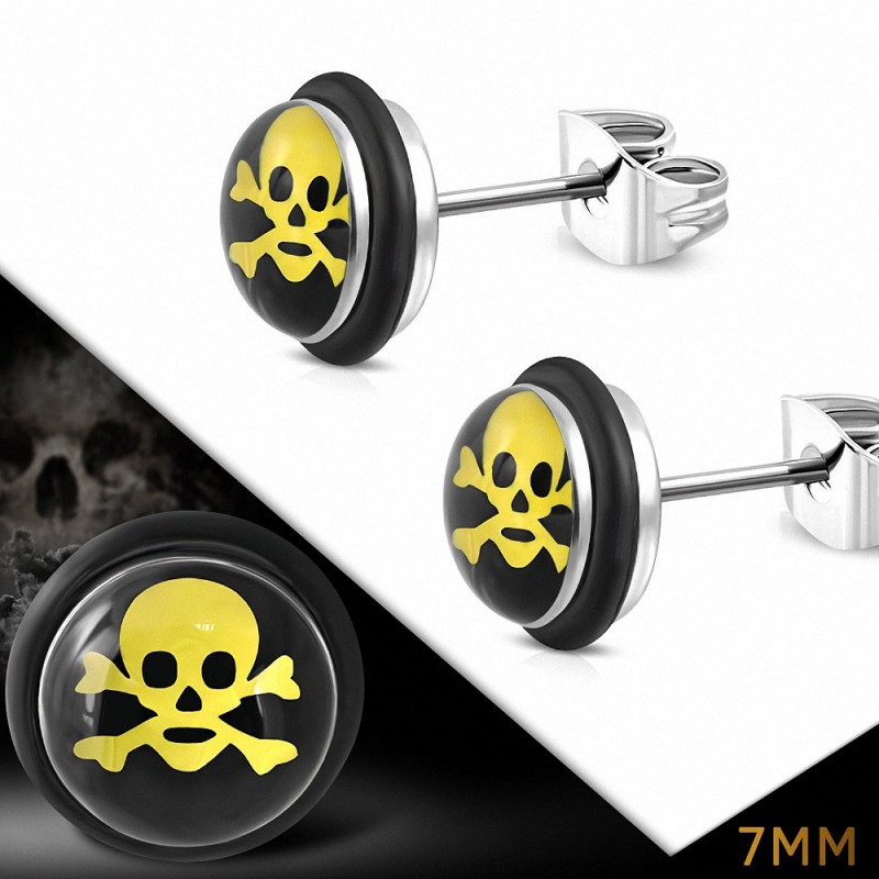 7mm | Boucles d'oreilles motard en acier inoxydable avec crânes et os de pirate en acier inoxydable à 3 tons (paire)