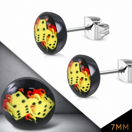 7mm | Boucles d'oreilles clous à cercle Lice Dice, spirale en acier inoxydable, 4 tons (paire)