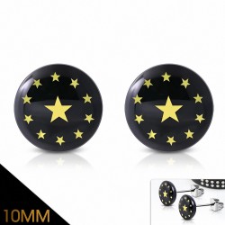 7mm | Boucles d'oreilles clous en acier inoxydable bicolores avec signe du zodiaque en acier inoxydable noir (paire)