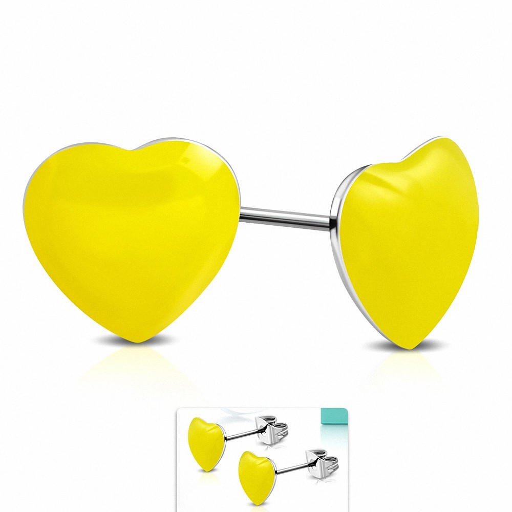 Boucles d'oreilles clous en acier inoxydable bicolores avec cœur jaune en résine (paire)
