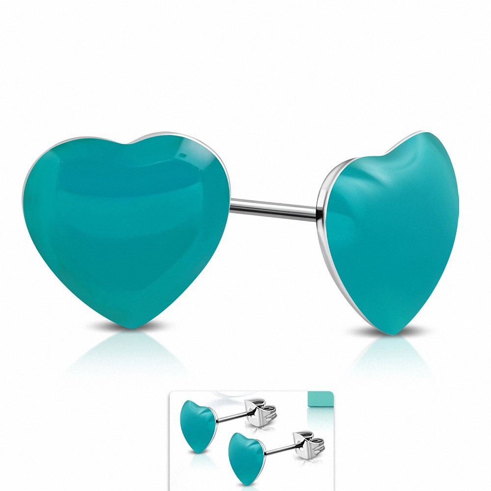• Boucles d'oreilles clous en acier inoxydable bicolores avec cœur en résine bleue (paire)