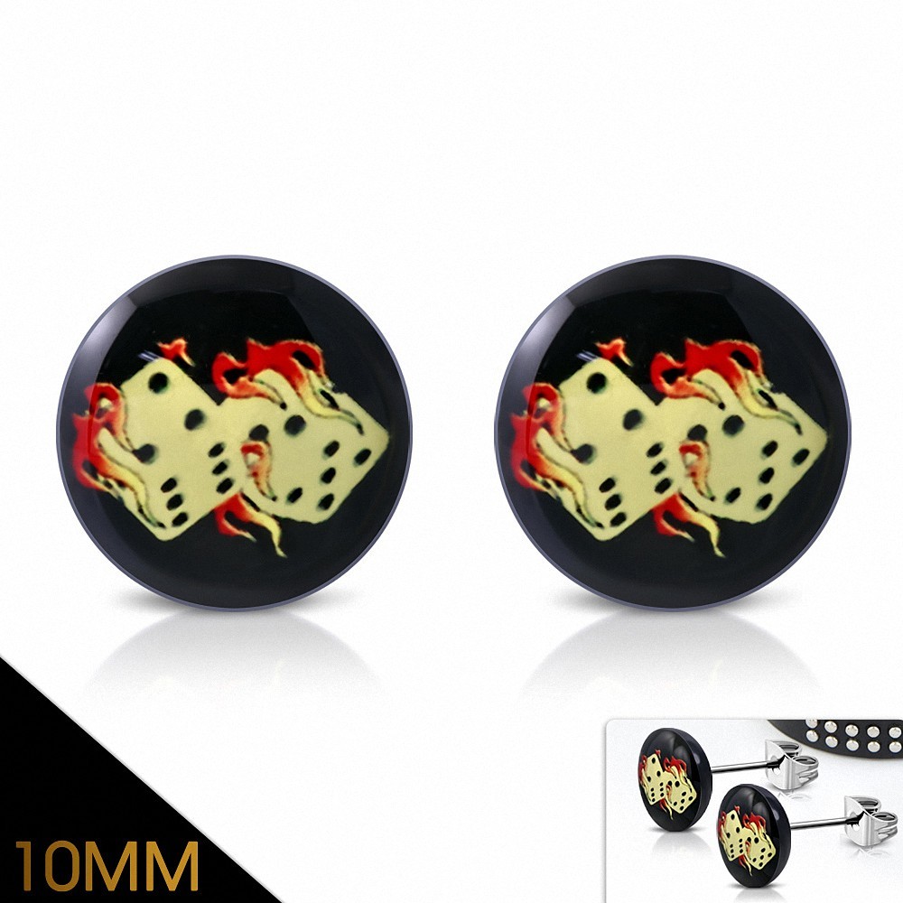 10mm | Boucles d'oreilles clous cercle Lucky Dice Circle en acier inoxydable à 4 tons (paire)