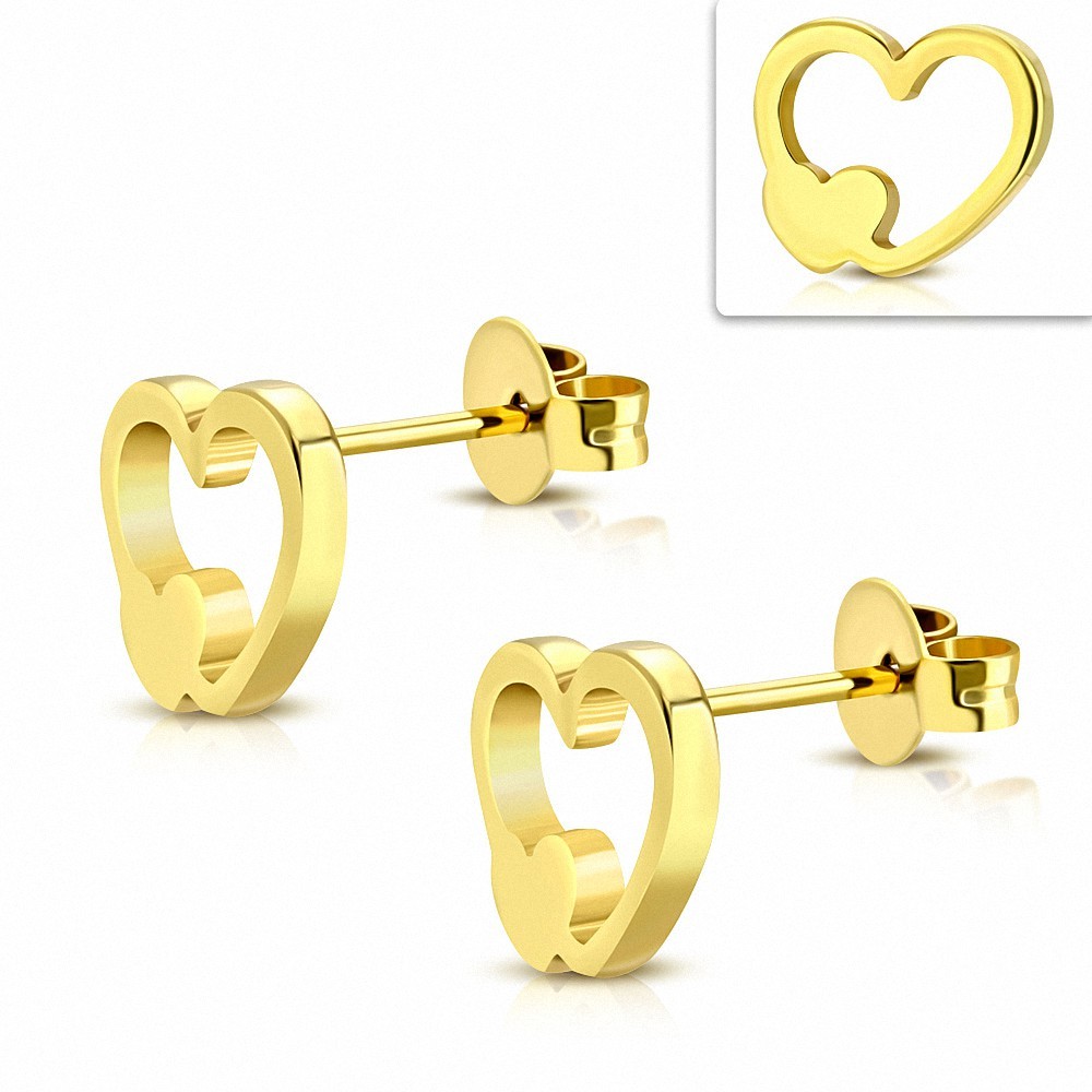 • Boucles d'oreilles clous en forme de coeur d'amour en acier inoxydable plaqué en couleur dorée (paire)