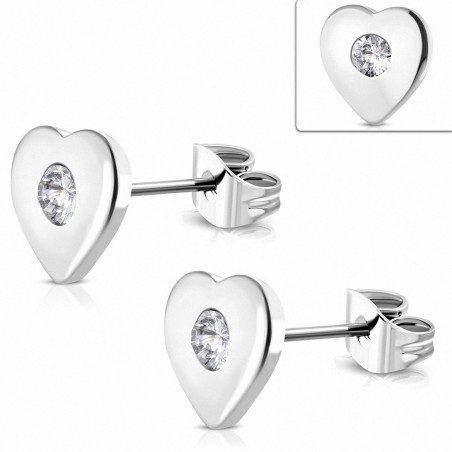 Boucles d'oreilles clous en forme de coeur d'amour en acier inoxydable avec CZ transparent (paire)