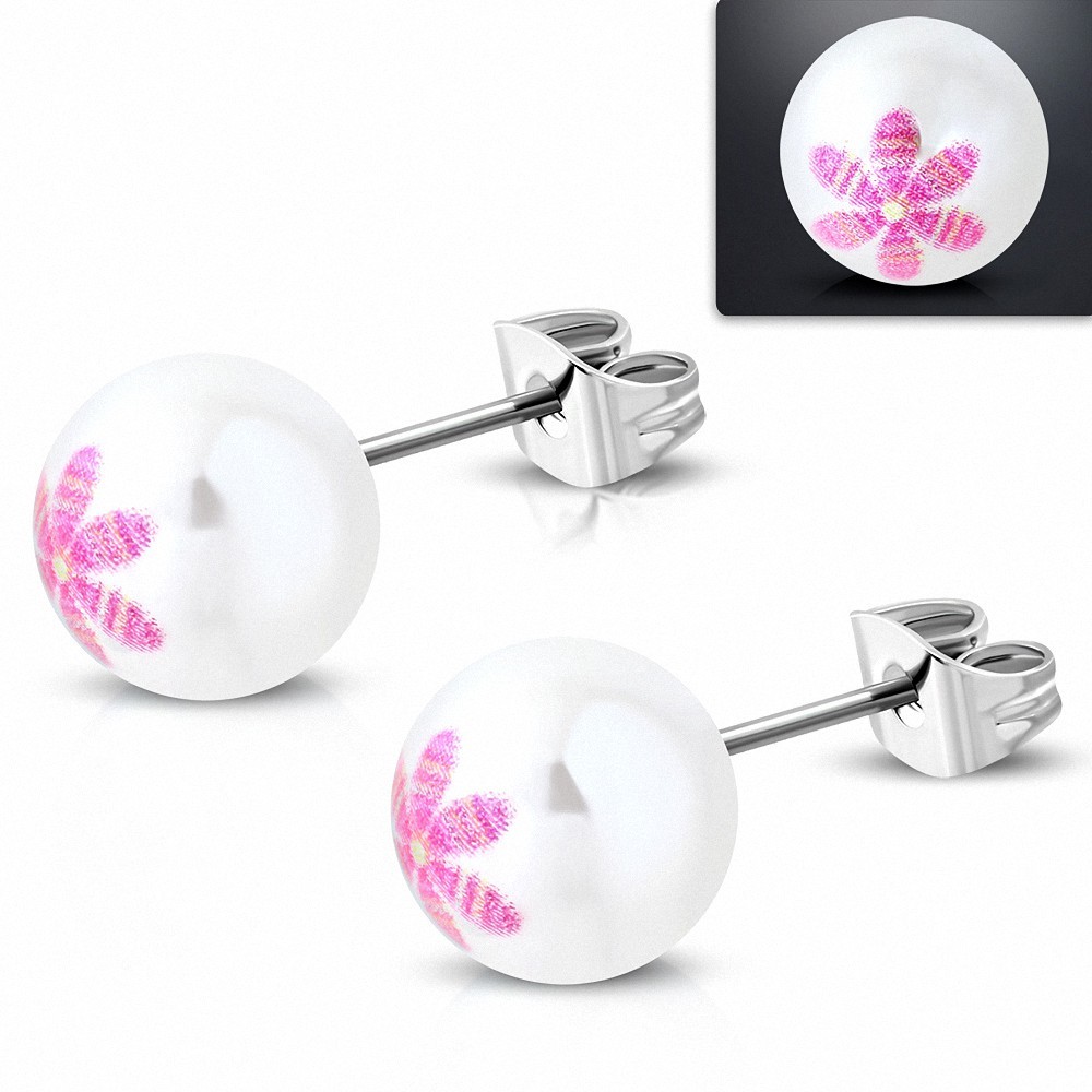 9.5mm | Boucles d'oreilles en acier inoxydable avec pendentif boule en perles blanches à 3 tons en acrylique blanc (paire)