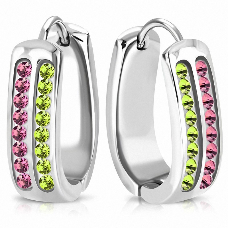 Boucles d'oreilles Huggie en forme de fer à cheval en acier inoxydable avec CZ rose et vert (paire)