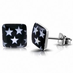 • Collier en acier inoxydable avec pendentif cercle et chaîne et paire de Boucles d'oreilles clous avec lumière rouge CZ (SET)