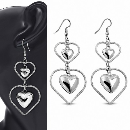 Boucles d'oreilles à double rangée de perles d'amour en alliage fantaisie à 2 rangées de pierress (paire)