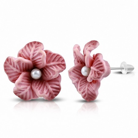 Boucles d'oreilles à la mode en forme de fleur de fimo / argile polymère (paire)