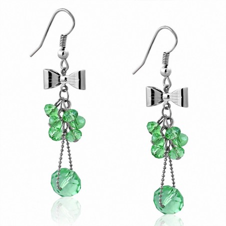 • Boucle d'oreille crochet en alliage de mode avec motif de perles vertes et perle longue (paire)